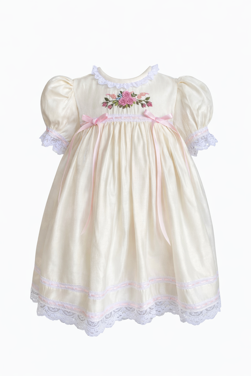 Crafted for special occasions, this dress is perfect for birthdays, portraits, weddings, baptisms, Easter celebrations, and family heirloom keepsakes.
